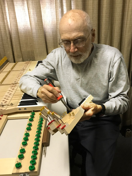During the 80s and 90s, Tom was contract piano technican for State University of New York at Plattsburgh for 19 years, and also for Johnson State College in Johnson, VT. Tom was technician for lots of schools, churches, and homes of teachers, students and avocational pianists. In 2010, Tom sold his home service business to Chris Rawson in Plattsburgh, NY. In 2017 Tom stopped selling new pianos. Currently, he sells used pianos, just from stock already on hand.